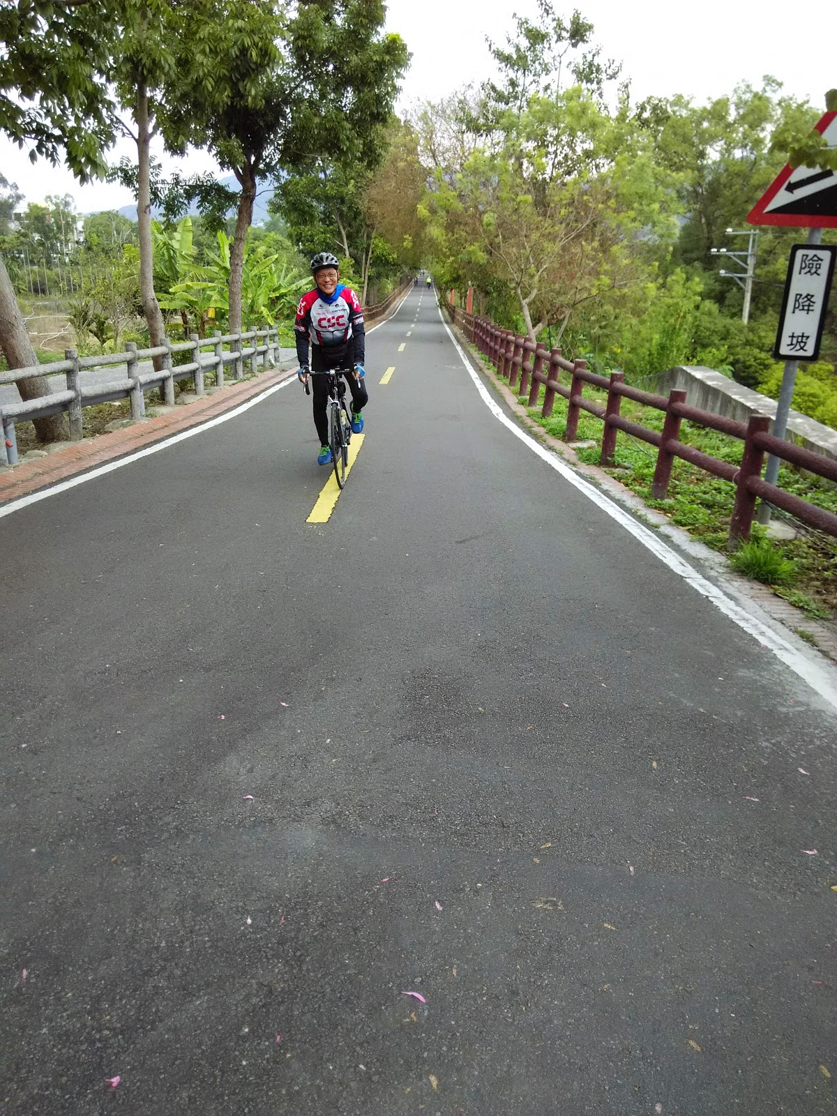 后豐自行車道上舊火車山線改建的路段,以往是火車上往外看,現在是騎單車在橋上跑,很是不一樣,所以振臂歡呼一下